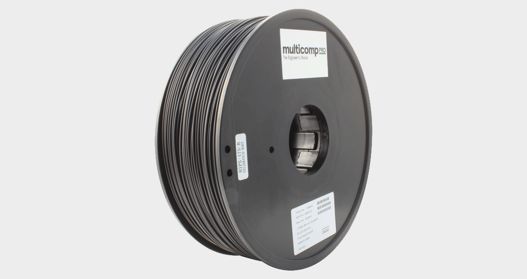 HIPS 是一种很好的支撑材料,因为它在打印完成后可以用柠檬烯溶解。它还具有良好的可加工性、易于涂漆和使用各种粘合剂等打印特性。Multicomp Pro 提供一对白色或黑色 HIPS 线材,直径均为 1.75 毫米,线轴重量为 1 千克。