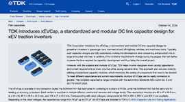 TDK 的 xEVCap 是一种标准化、模块化的直流链路电容器设计,适用于乘用车、商用车、非公路用车以及机床中的动力系统逆变器。通常,此类电容器设计需完全定制,因此开发耗时,且仅适用于大批量生产。借助可扩展且模块化的 xEVCap,TDK 可帮助逆变器设计师在较低产量的情况下满足不同的电容和电流要求,同时节省宝贵的时间。